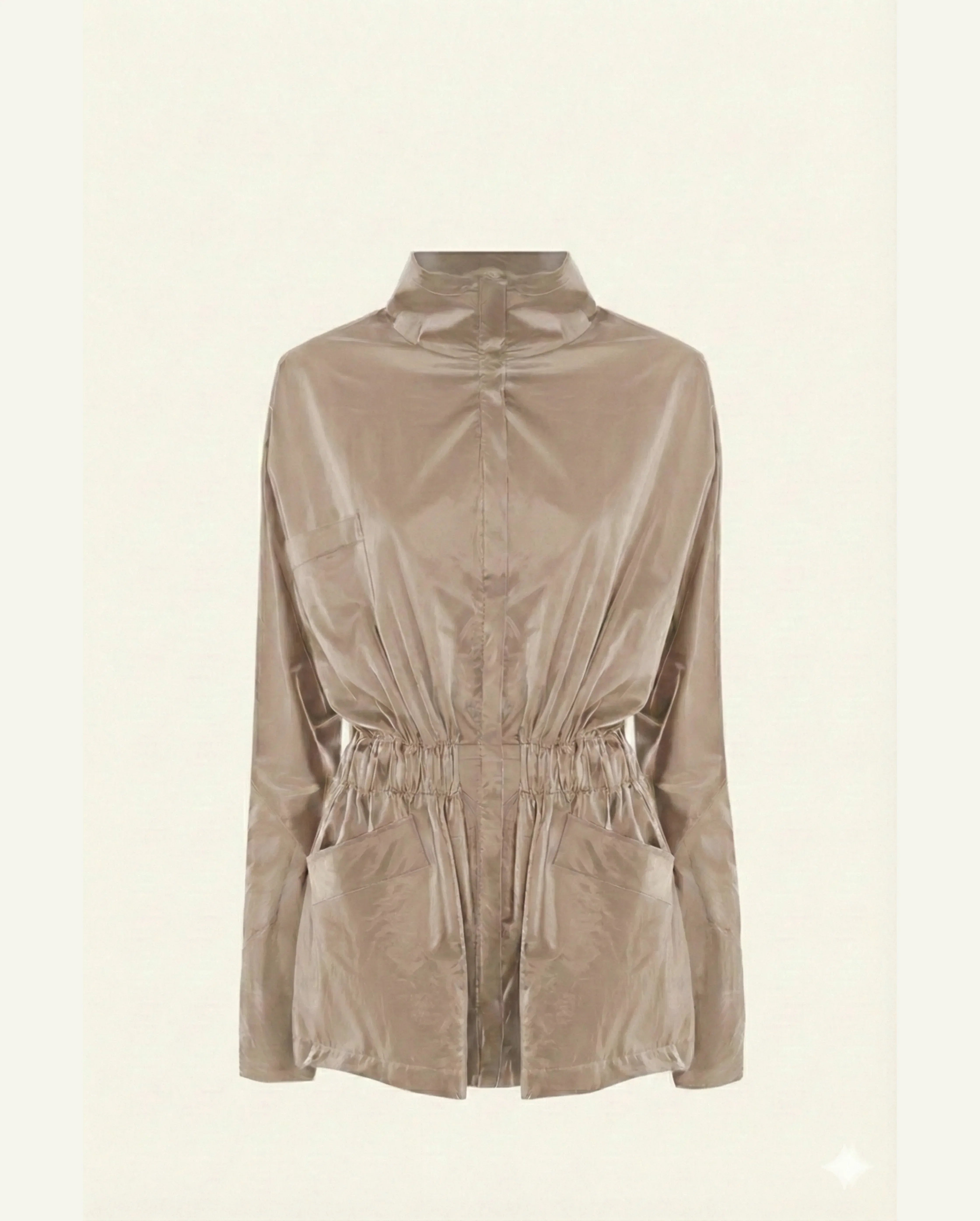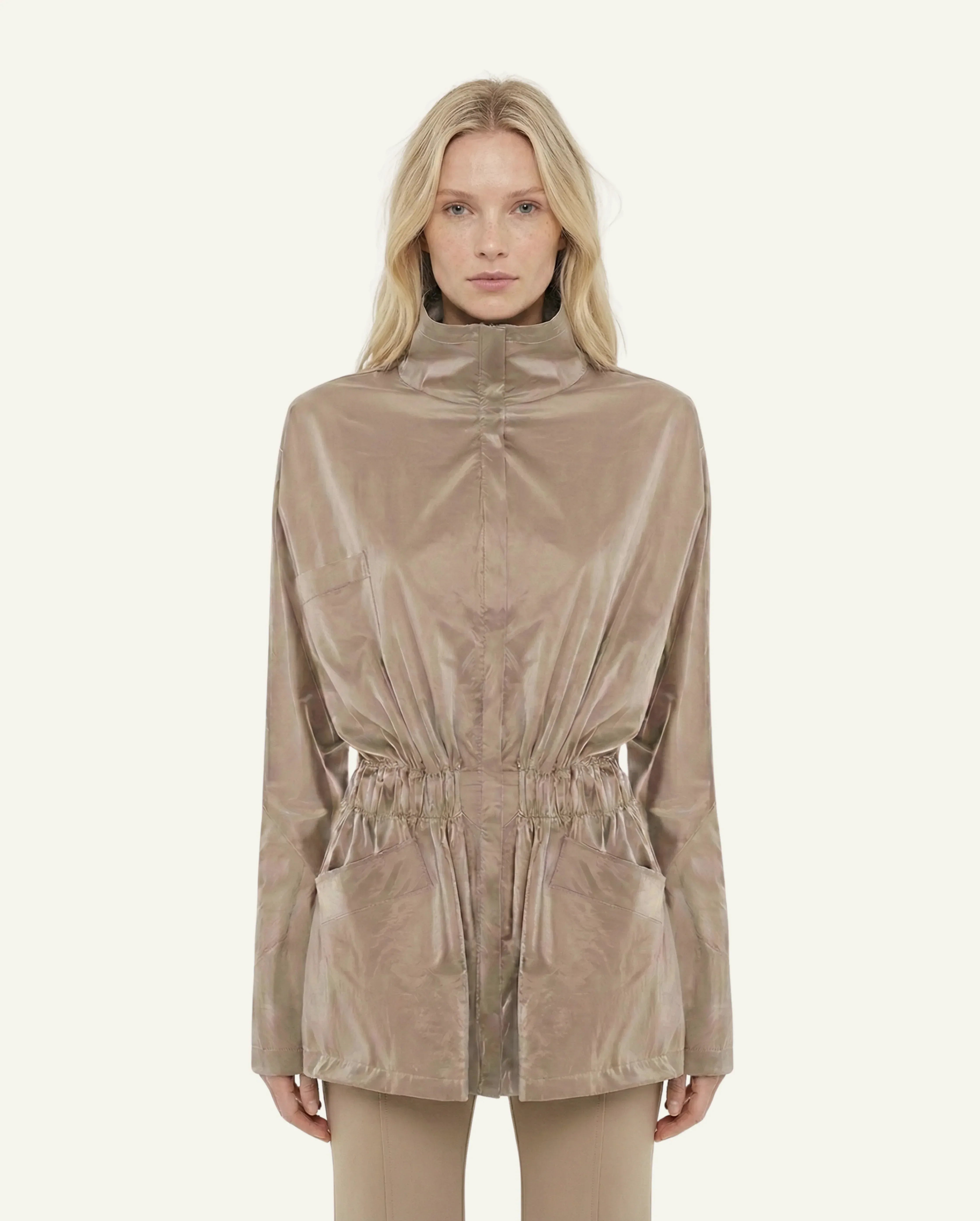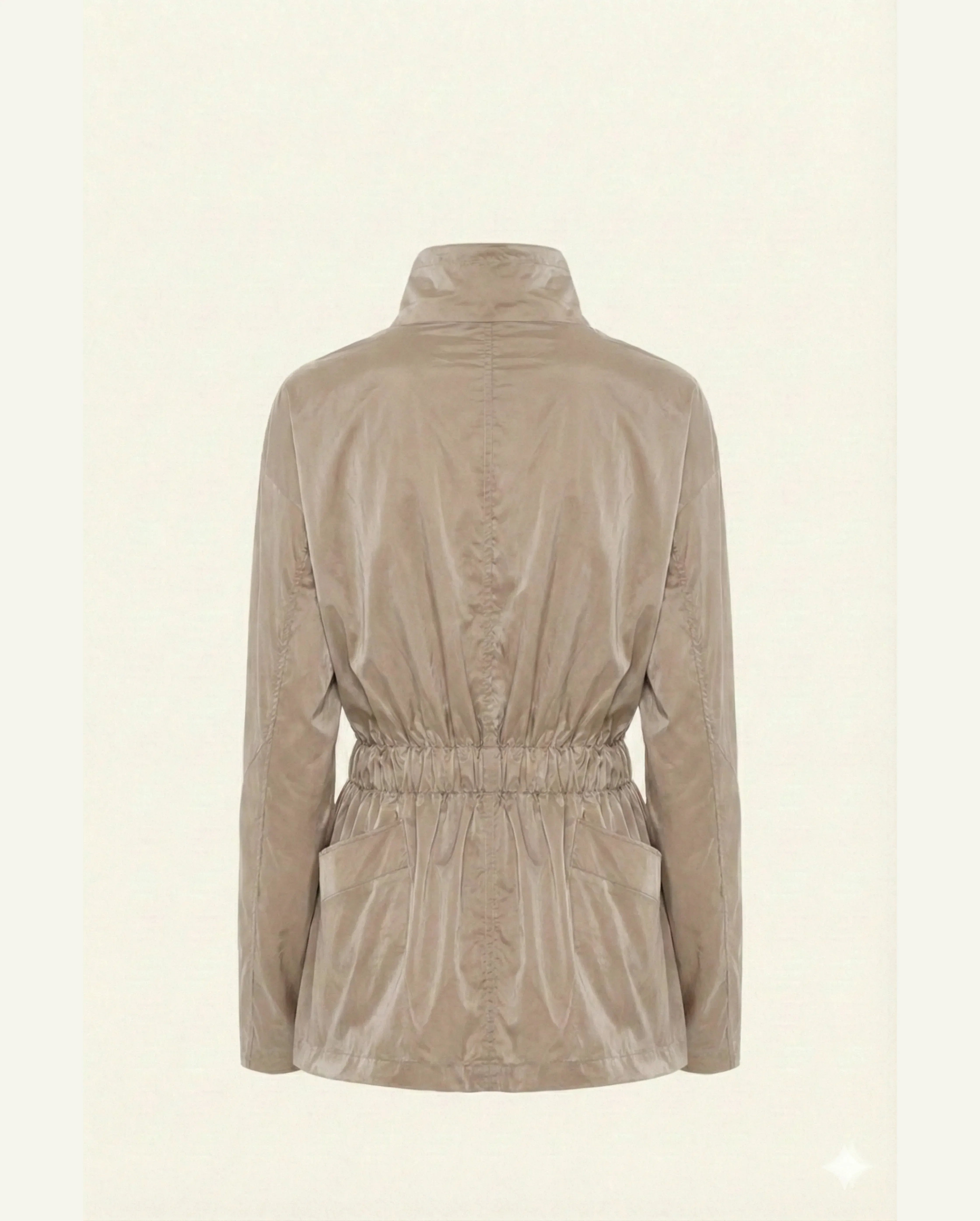 Single-Panel Cotton Windbreaker with Lyocell/Wool Lining - Beige